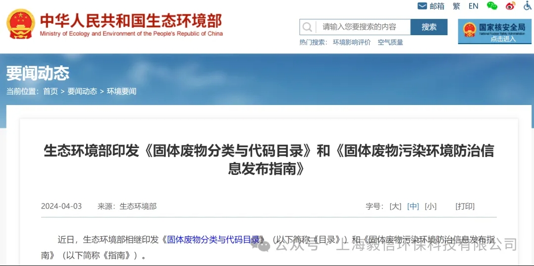 生態(tài)環(huán)境部近日印發(fā)《固體廢物分類(lèi)與代碼目錄》(以下簡(jiǎn)稱(chēng)《目錄》)和《固體廢物污染環(huán)境防治信息發(fā)布指南》(以下簡(jiǎn)稱(chēng)《指南》)。 生態(tài)環(huán)境部在官宣中表示,《目......